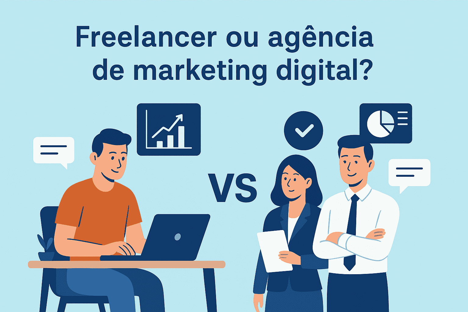 Marketing Digital Freelancer ou agência de marketing digital: qual a melhor escolha para sua empresa? Entenda as diferenças entre freelancer e agência de marketing digital, veja os prós e contras de cada modelo e saiba por que a Vitrine Digital
